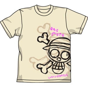 お馴染みルフィ海賊団の海賊旗マークをクレヨンで描いたかわいいドクロマーク風にでっかくプリントしました!ポイントで入れた文字もビビットなカラーで、さわやかでかわいらしいTシャツです!これからの季節いつでも着ていたい一枚です!!