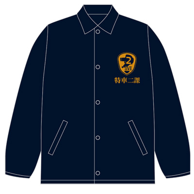 特車二課第二小隊のヘッドギアが力強く配置された襟付きタイプのウインドブレーカーの登場!! 胸元に入った「特車二課」の文字が実際にありそうなリアルさがあり、ファンならずとも目を引いてしまうデザインに仕上がっています。ラフに着られるウインドブレーカーなので春先に一着あると便利です。