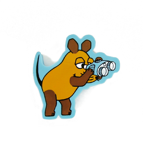 優しいブルーの消しゴムに双眼鏡でどこかを見ているマウスをプリントしました!