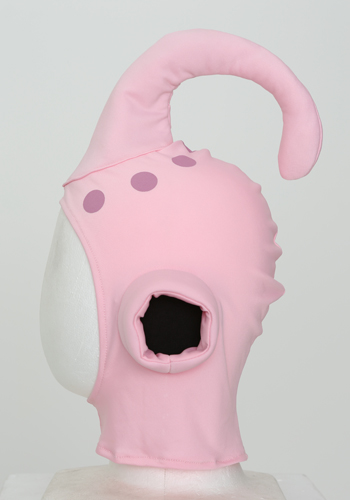 ■マスクは伸縮性のある生地を使用した、かぶるタイプのマスクです。頭頂部のツノと耳の部分にわたを入れ、立体的に仕上げています。