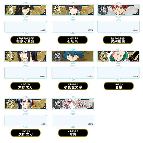 「和泉守兼定」「石切丸」「愛染国俊」「太郎太刀」「小夜左文字」「岩融」「次郎太刀」「今剣」