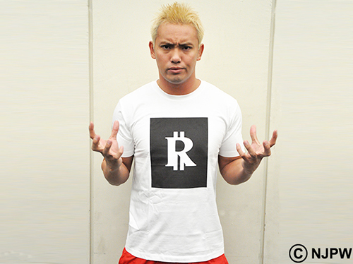 レインメーカードル札やコインでおなじみになった「R」マークをフロント、右そで、バック面に配したオカダ・カズチカ選手の新Tシャツ!