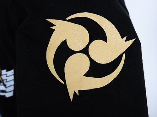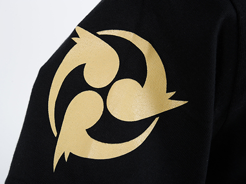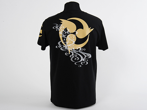 コスチュームで印象的な「雷神」のマークやカラーリング、風や雲の模様をデザインに落とし込んだのがこのTシャツ。