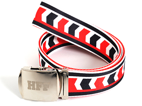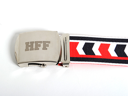 表裏ともにデザインがプリントされた豪華仕様、バックルにもロゴをレーザー刻印!