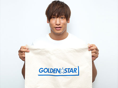 イブシブルーのカラーリングで片面には「GOLDEN☆STAR」のワードロゴ、もう片面にはエンブレム風の"翼が揃ったSTAR"をプリント。
