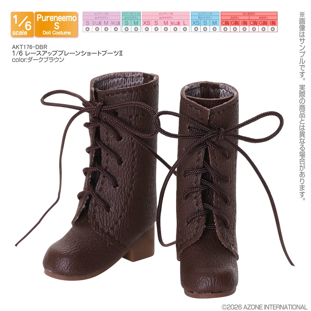 【1/6サイズドール用】1/6 レースアッププレーンショートブーツII