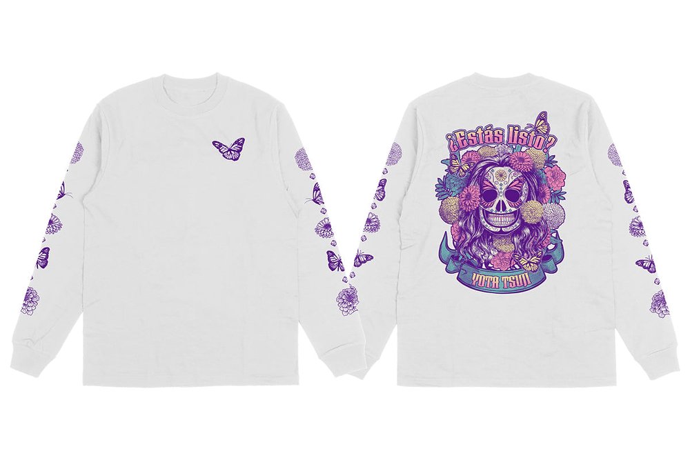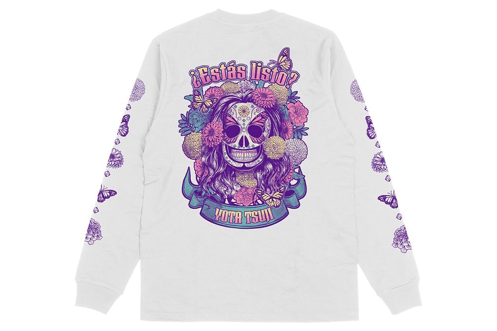 「Estas listo」のフレーズ、「YOTA TSUJI」の選手名、蝶々のデザインがプリント。