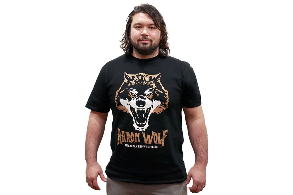 Tシャツは五輪ゴールドメダリストをイメージした“金色の狼”ロゴを「AARON WOLF」「NEW JAPAN PRO-WRESTLING」の文字とともにデザイン。
