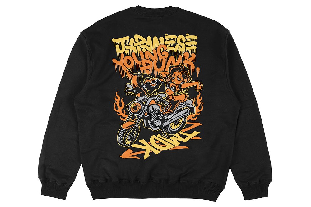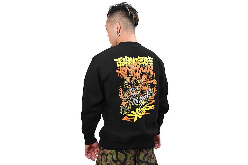 左胸には「JAPANESE YOUNG PUNKS」のキャッチフレーズがデザイン。