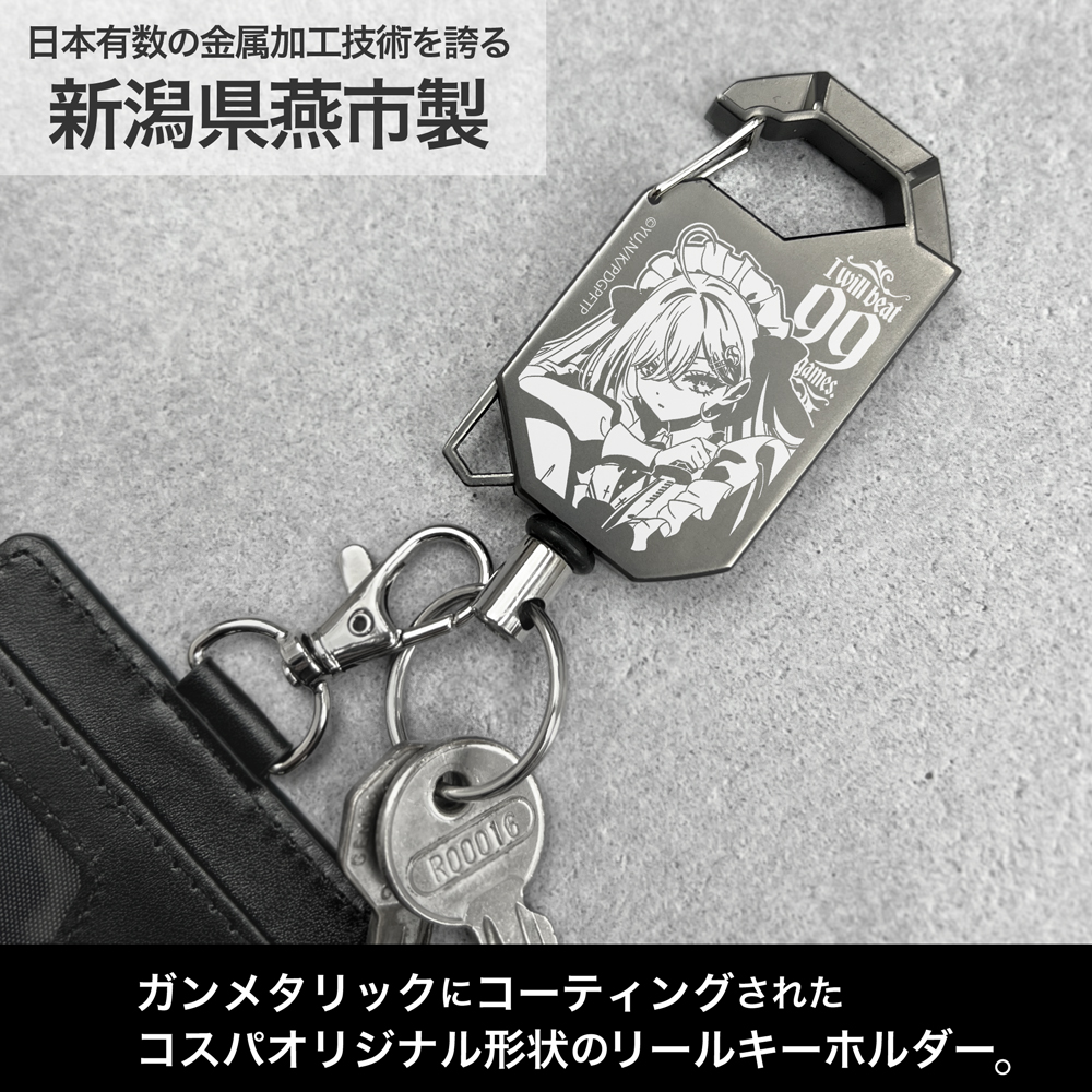 ・ガンメタリックにコーティングされたコスパオリジナル形状のリールキーホルダー。