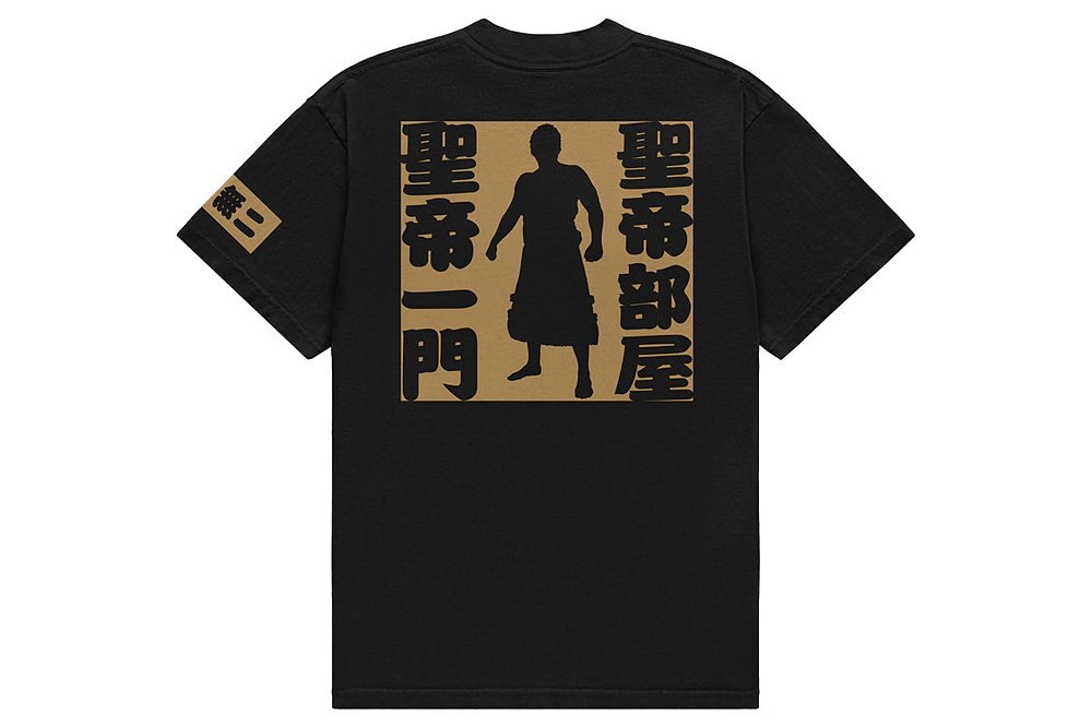背中は化粧まわしをつけた親方のシルエットと「聖帝部屋」「聖帝一門」の文字をデザイン。