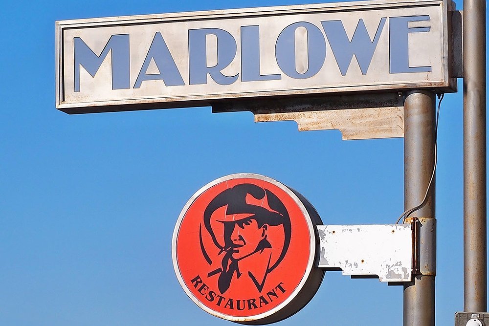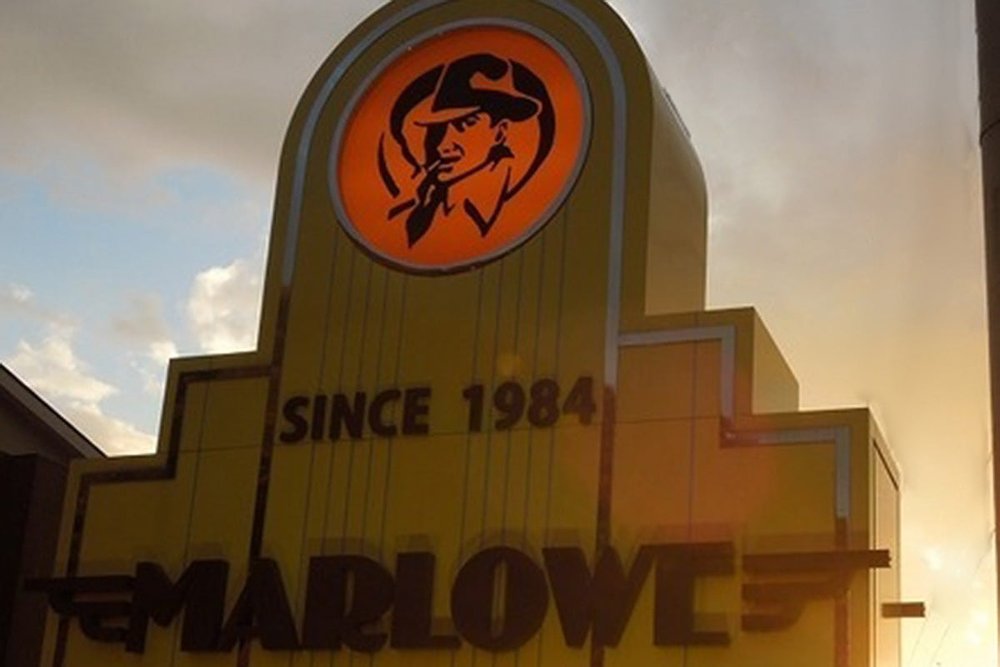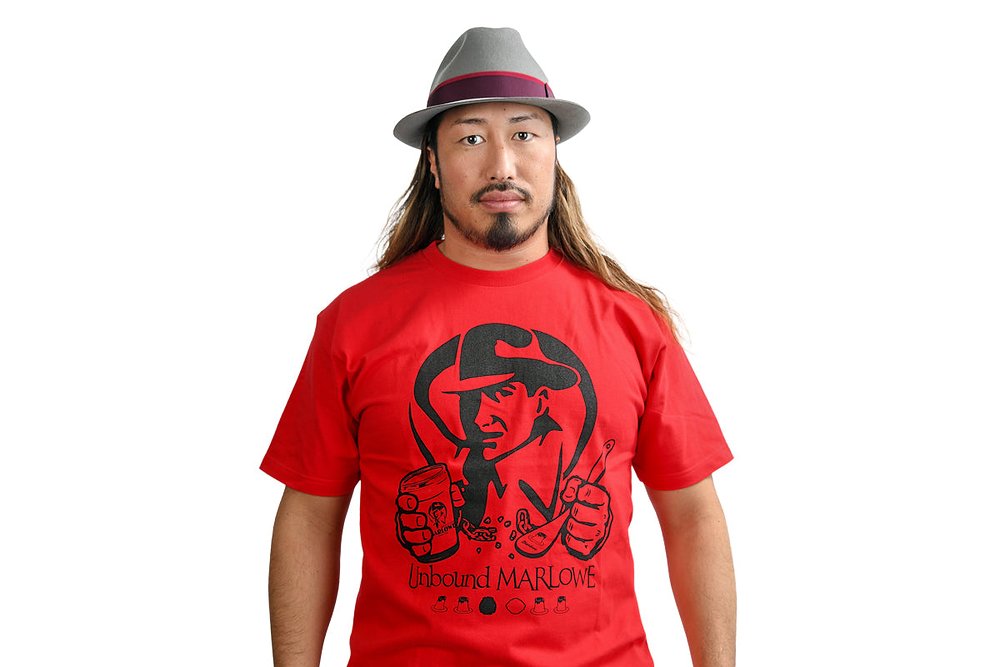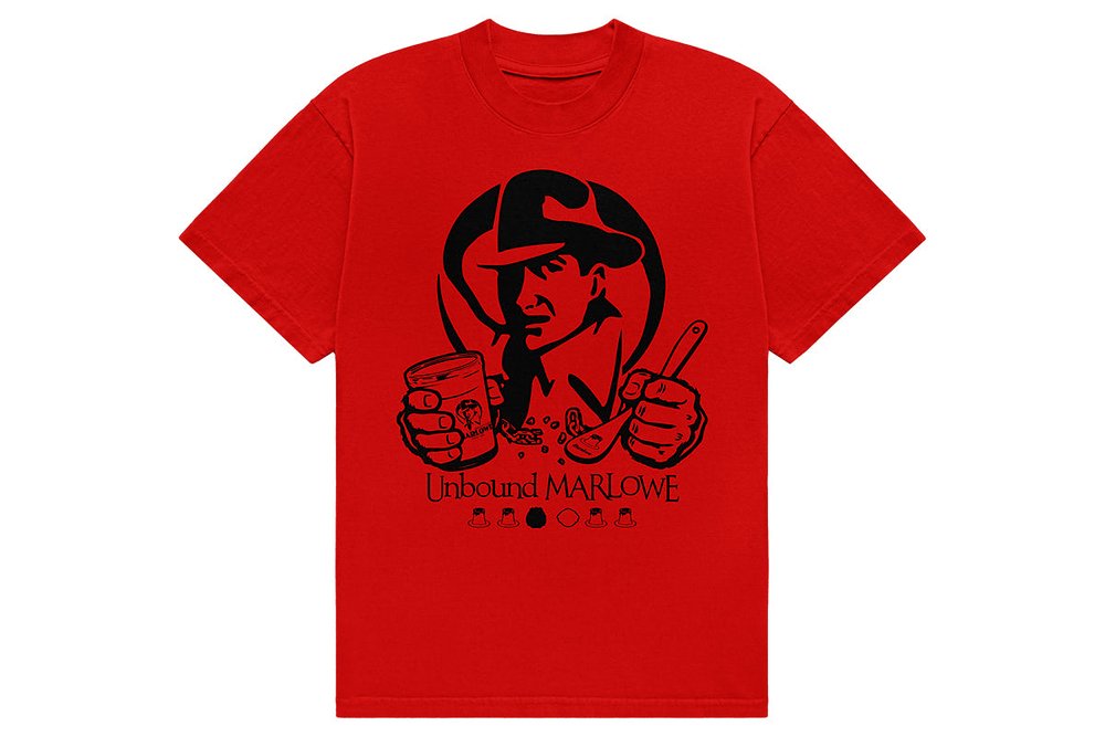 ダンディーな「マーロウ ロゴ」、「Unbound MARLOWE」の英字、“自由を求める腕と引き千切られた鎖”を表す「Unbound Co.」ユニットロゴが「マーロウのビーカー&スプーン」と掛け合わされたデザイン。