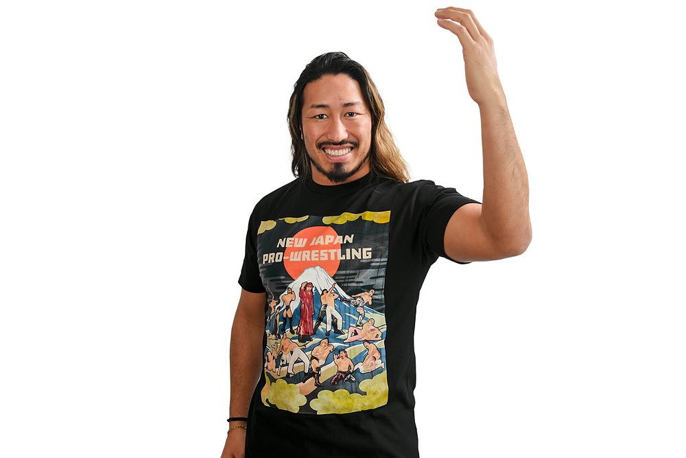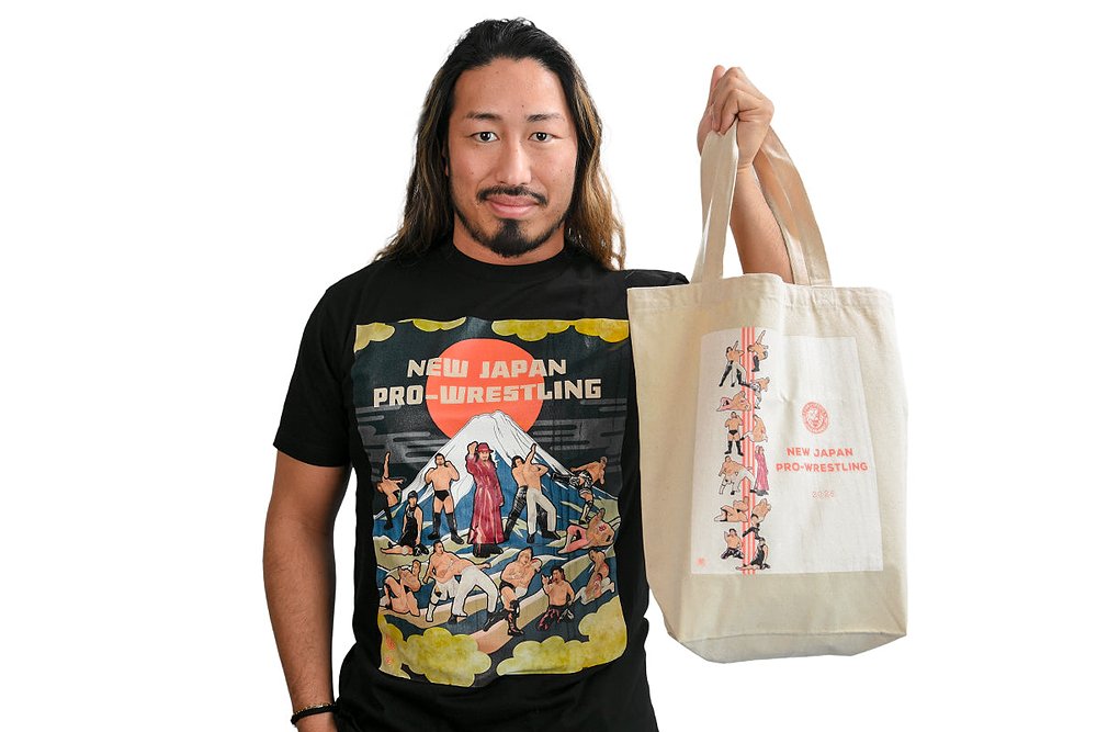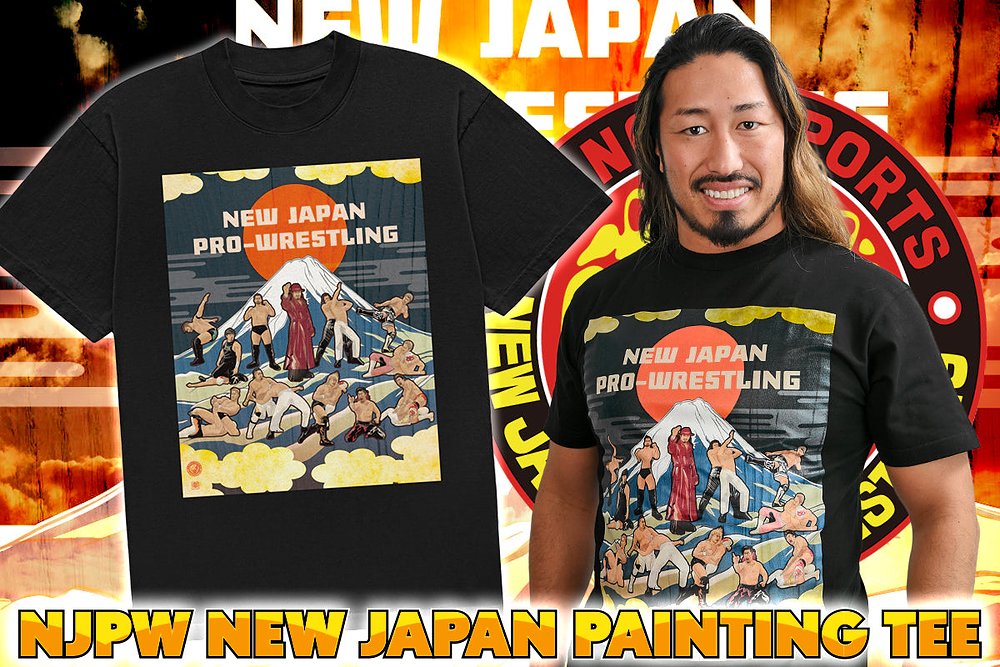 新日本プロレスの選手を「日本画風」の表現で描いた『「日輪富嶽」(太陽と富士山)』Tシャツが完成!