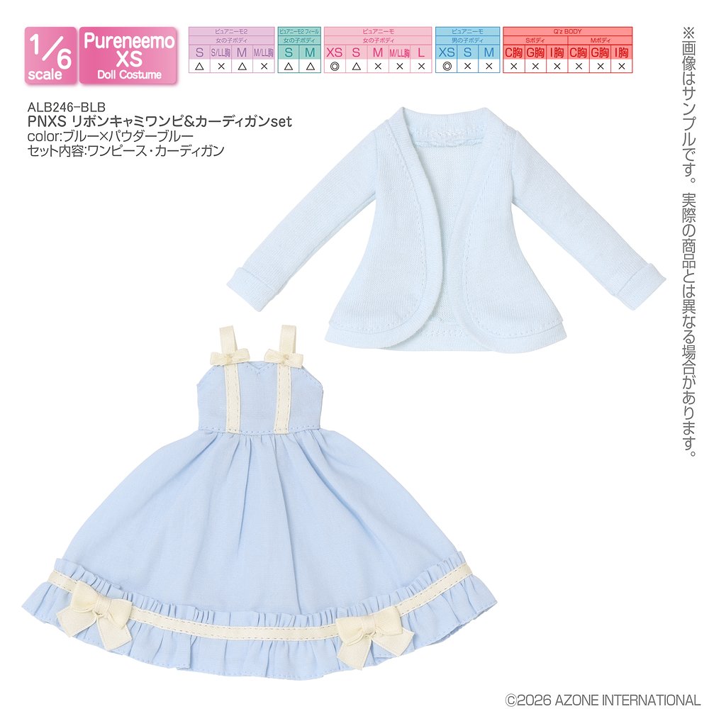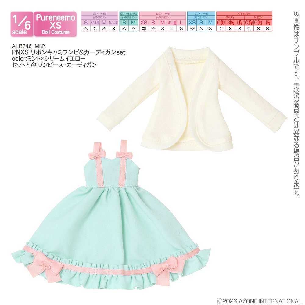 【1/6サイズドール用】PNXS リボンキャミワンピ&カーディガンset