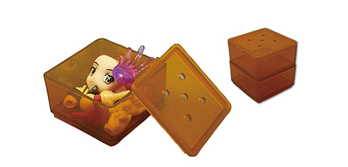 小さなオプションパーツをまとめて、積み重ねて収納できる便利な「リボコンテナ」を全商品に付属。