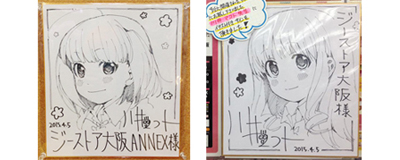 他にも、『NEW GAME!』得能正太郎先生、『幸腹グラフィティ』川井マコト先生による展覧会の為の描きおろし色紙も展示!