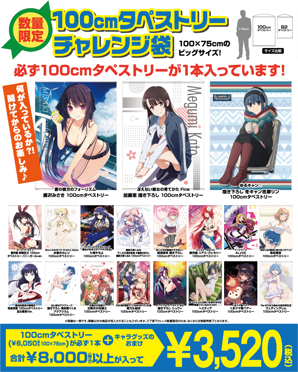 100×75cmのビッグサイズ!タペストリー(税込¥6,050)が必ず1本+キャラグッズのおまけ
