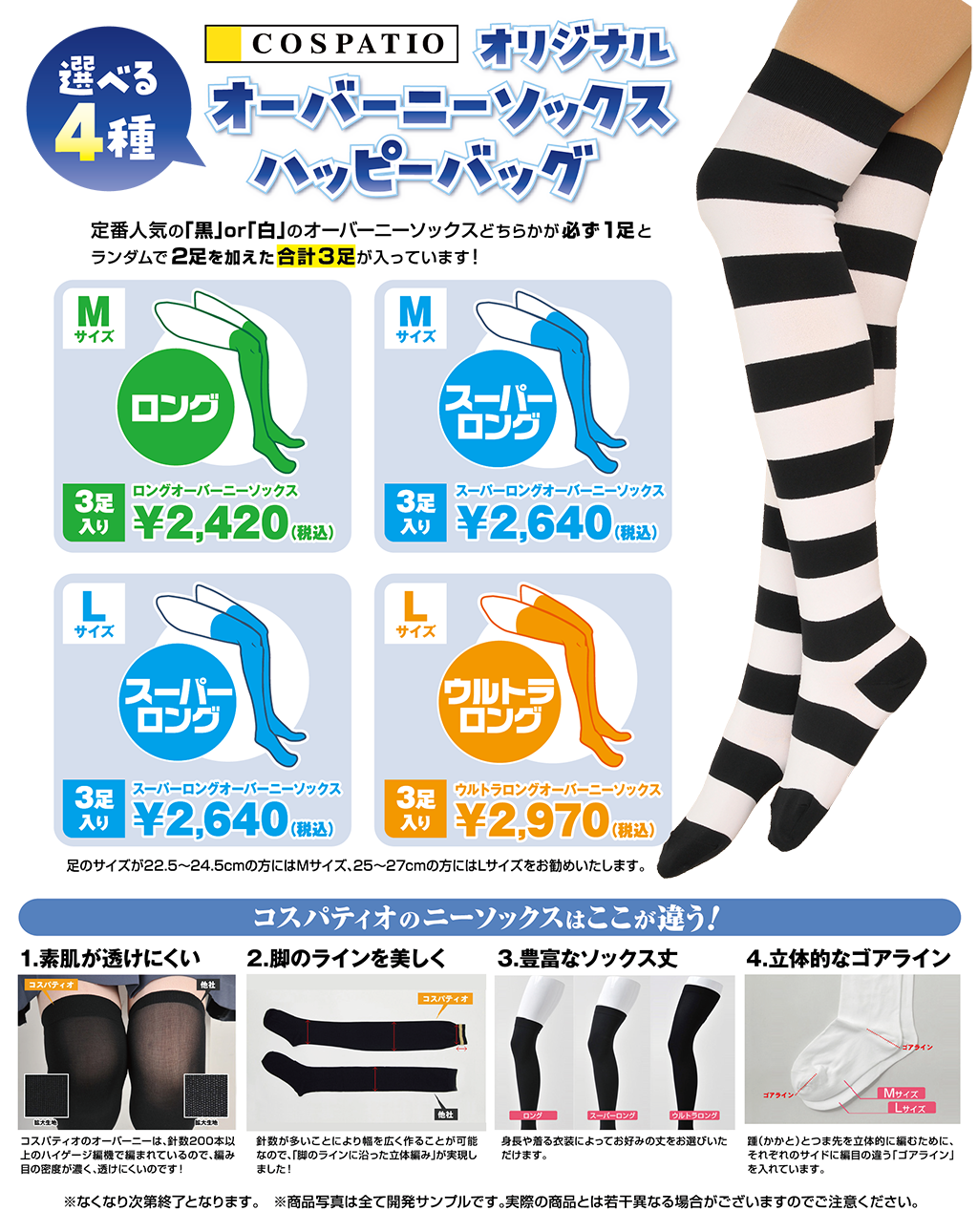 素材や履き心地にこだわり開発された、人気のコスパティオオリジナルニーソックスのお試しバッグが数量限定で登場