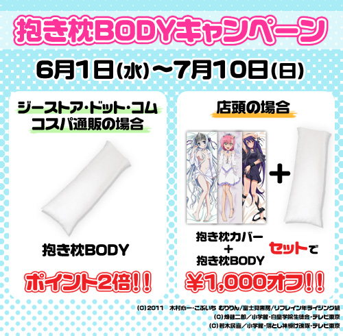 ジーストア・ドット・コム、コスパ通販をご利用の方は、抱き枕ボディのポイントが2倍となります。